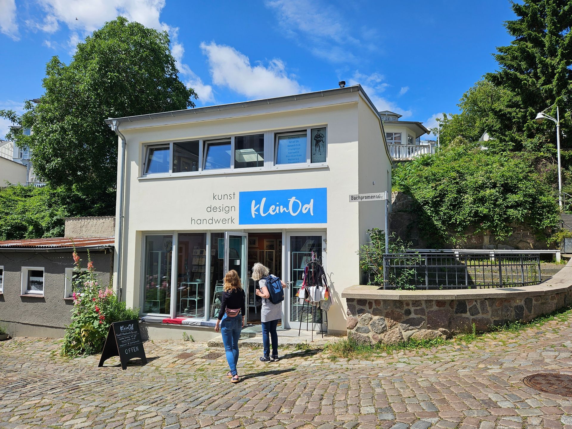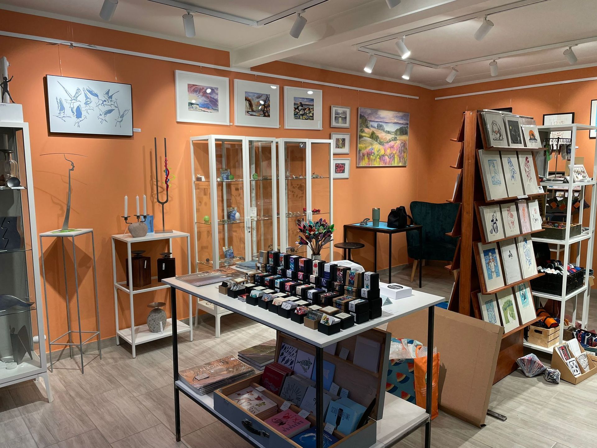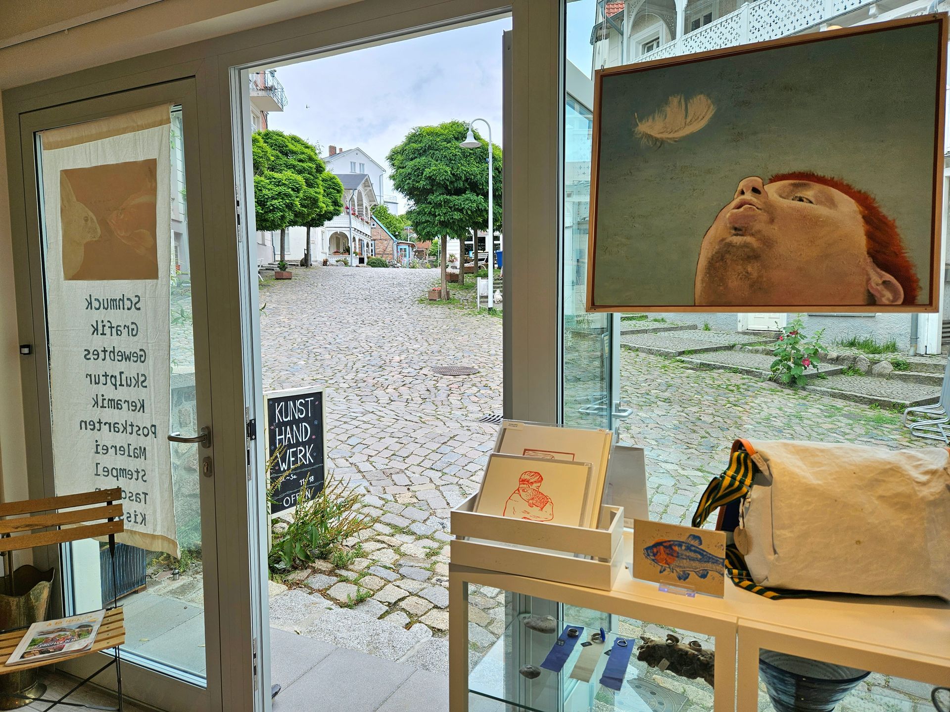 - das sind wir: 13 kreative Produzenten aus den Bereichen Schmuckdesign, Malerei und Grafik, Fotografie, Holzgestaltung, Bildhauerei/ Metallgestaltung, Textilgestaltung/Weberei, Upcycling und Kerzenmacherei, die seit drei Jahren ihre Arbeiten mitten in der wunderschönen Altstadt von Sassnitz zeigen und verkaufen.